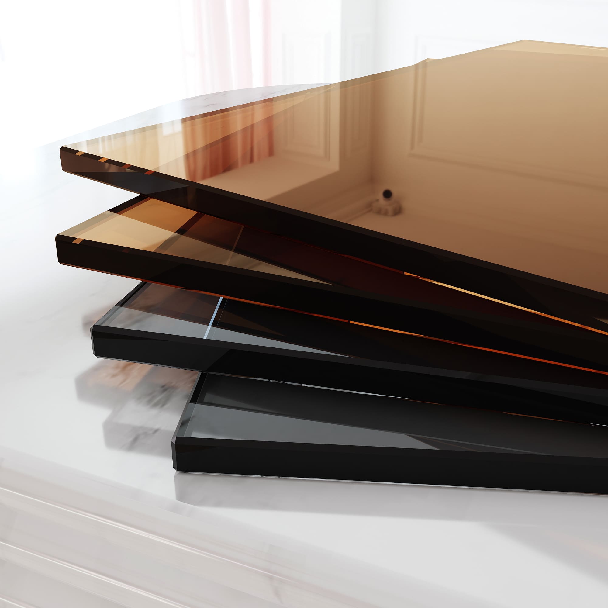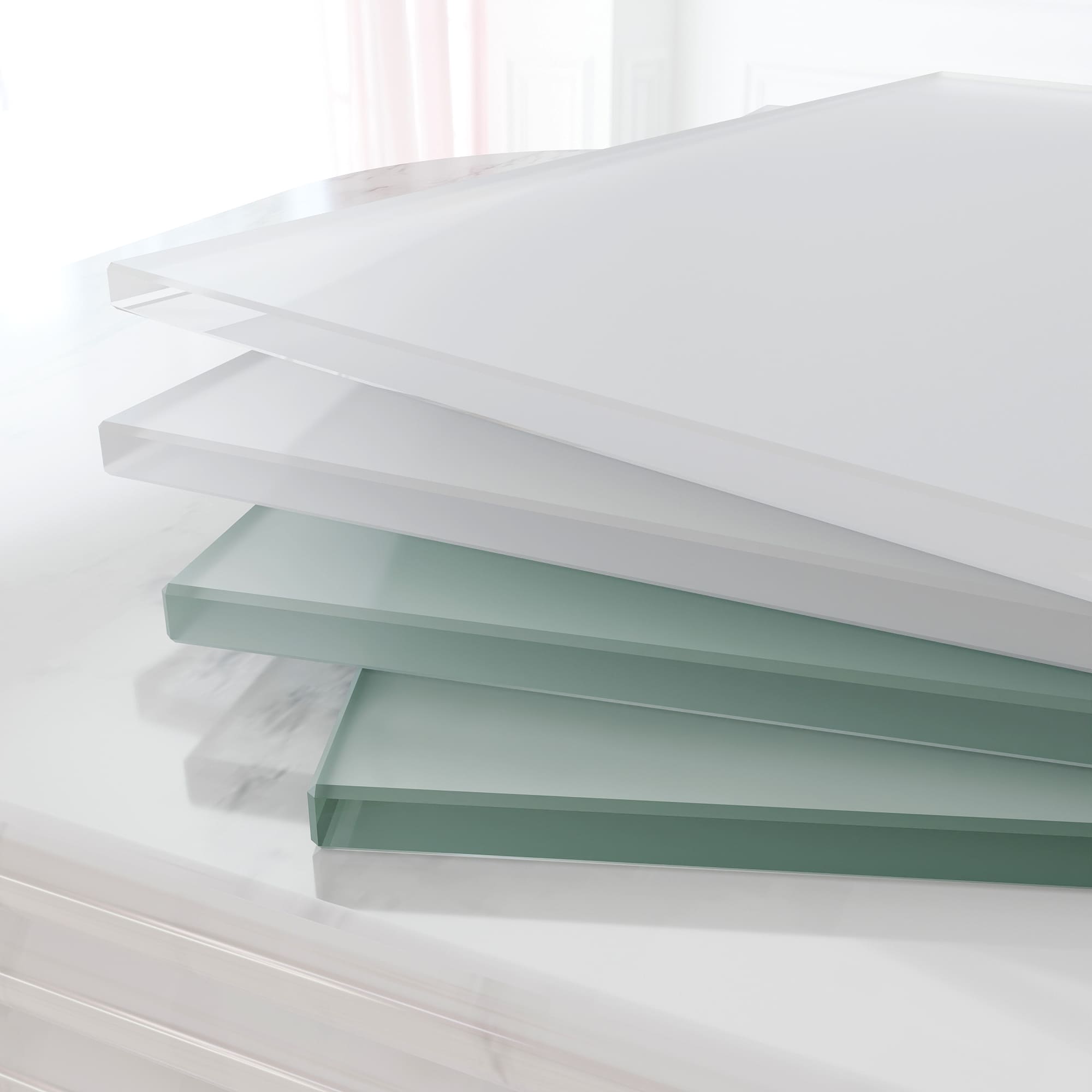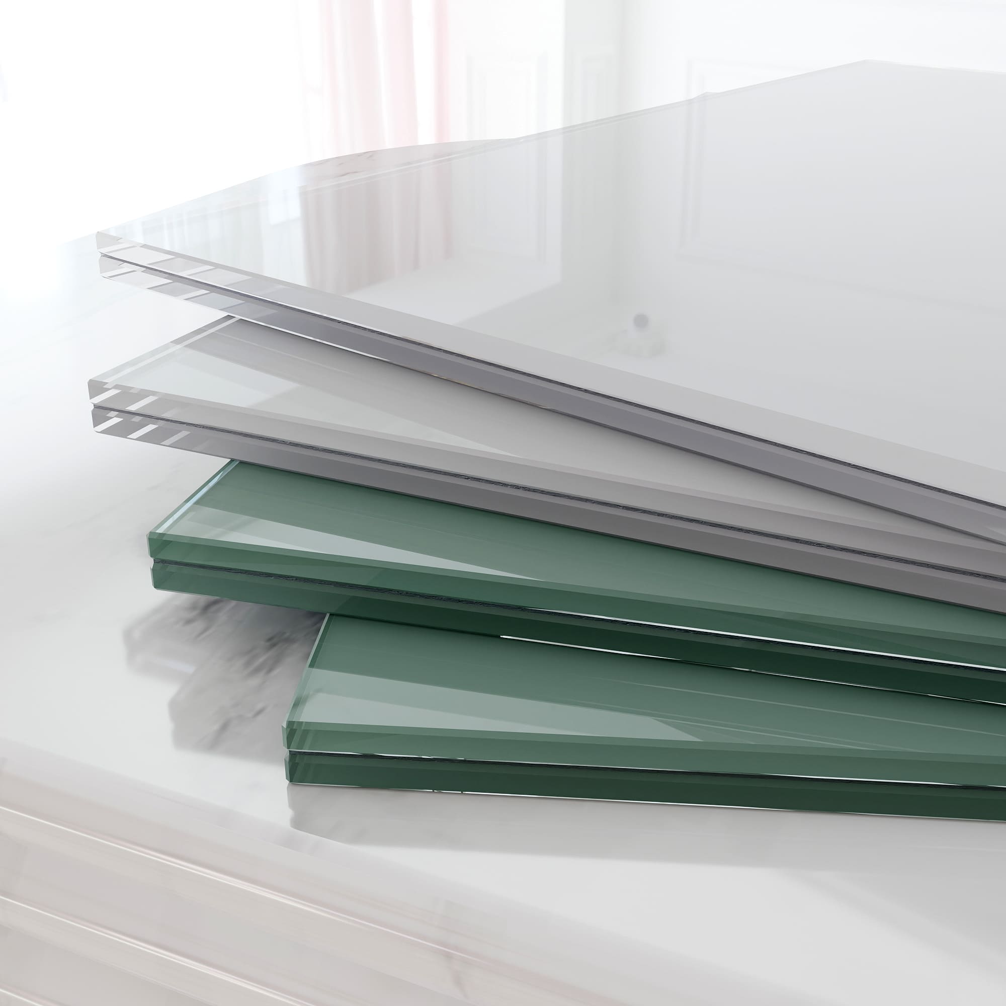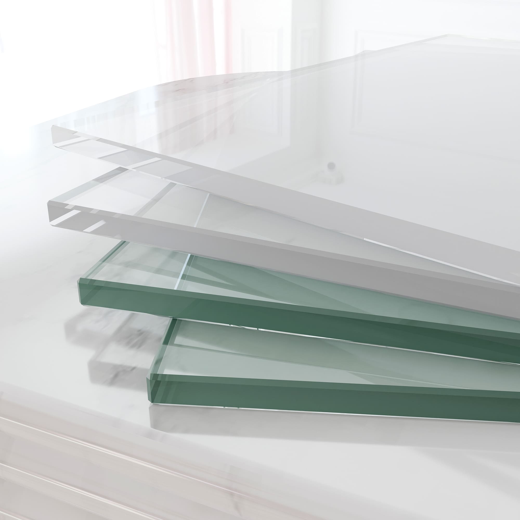 Используем интерьерное закаленное стекло бельгийского производителя Guardian. Высокая механическая прочность, повышенные требования к оптическим свойствам