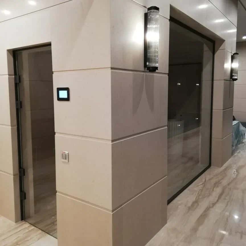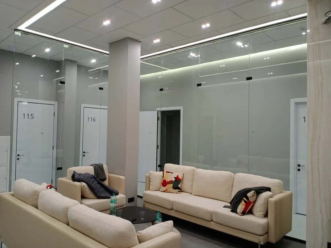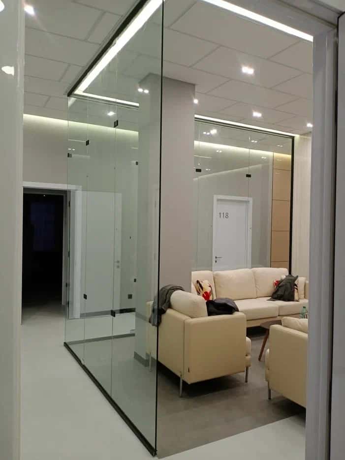 Интерьерное закаленное бельгийское стекло Guardian. Высокая механическая прочность, повышенные требования к оптическим свойствам.