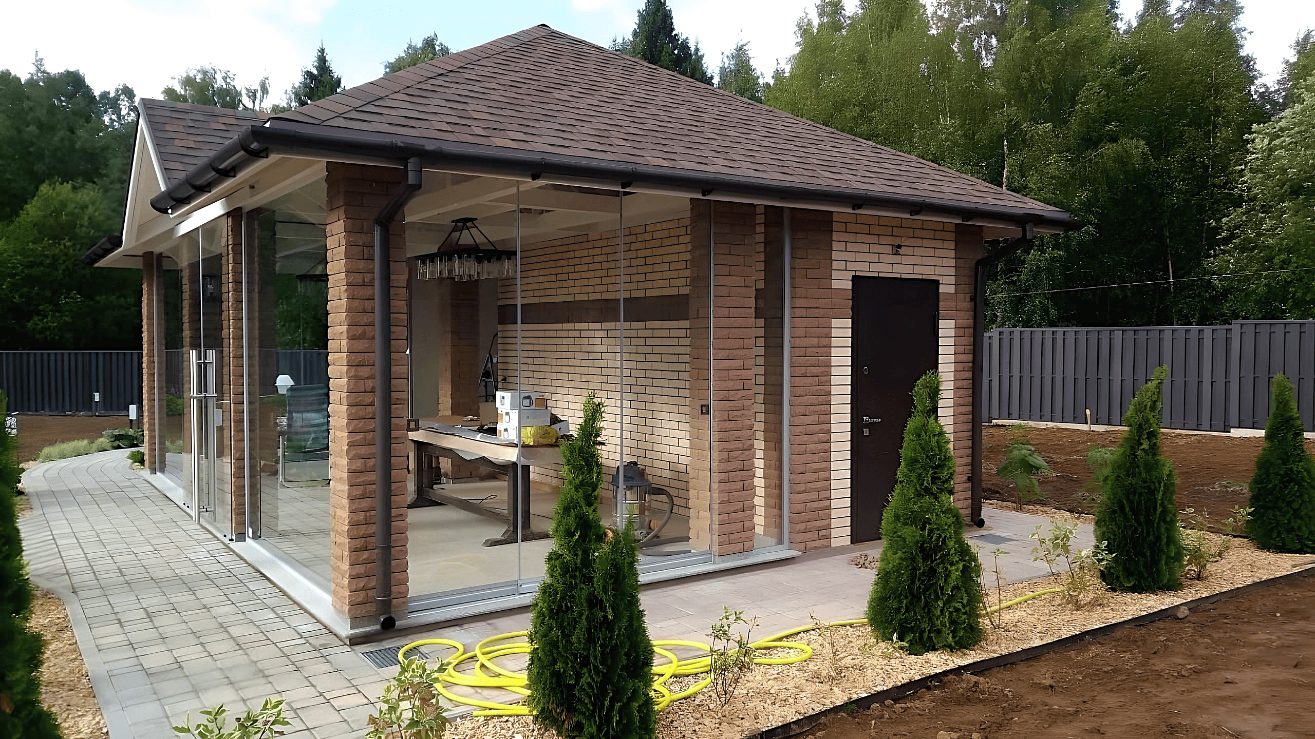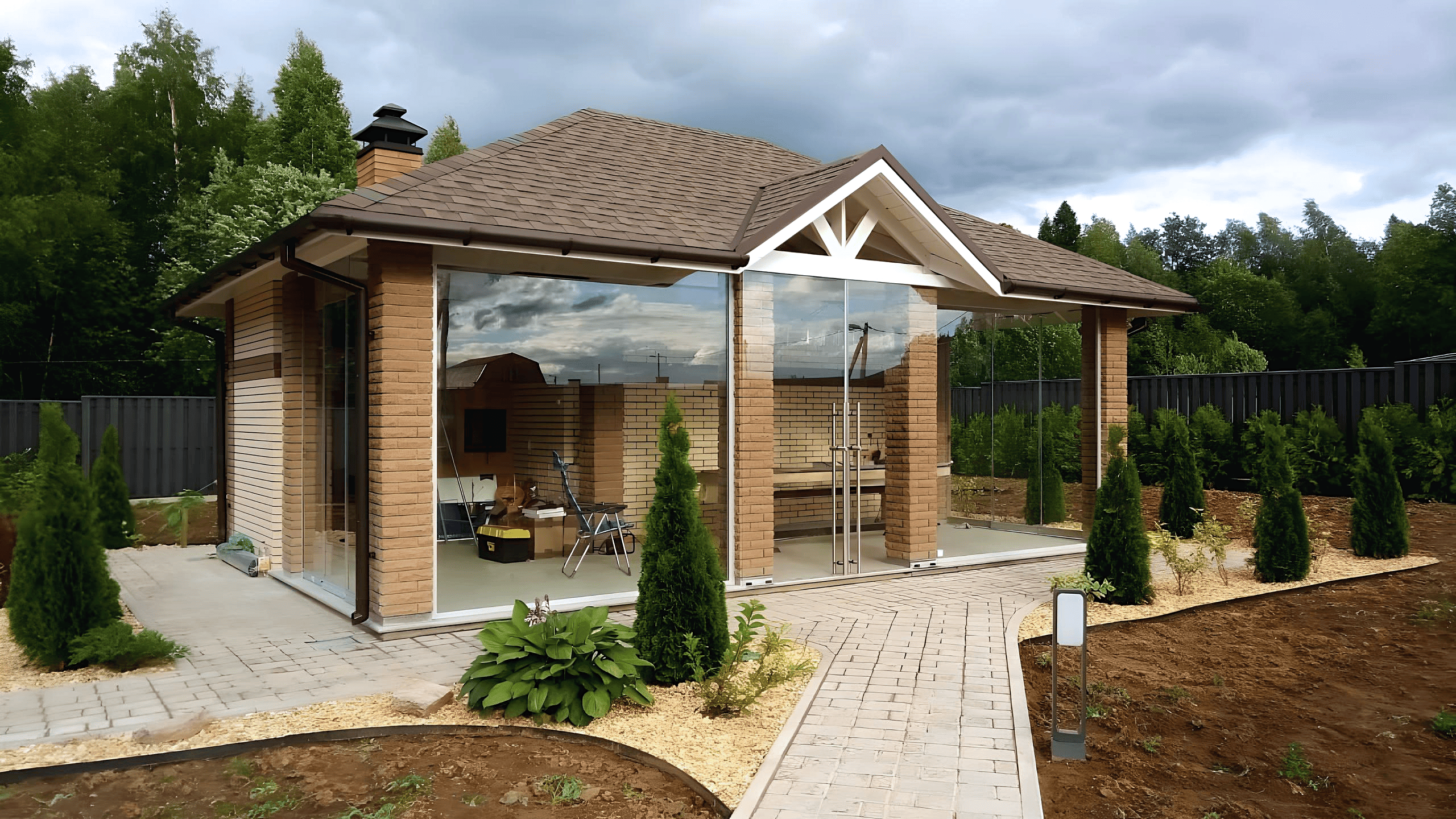 - Остекление двух проемов раздвижной системой.