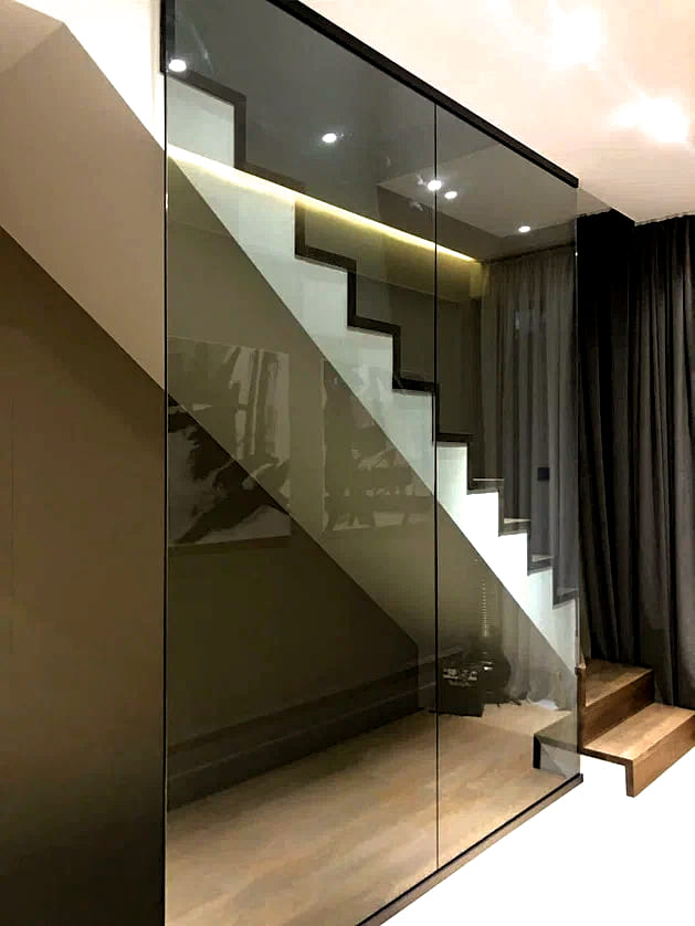 Используем интерьерное закаленное стекло бельгийского производителя Guardian. Высокая механическая прочность, повышенные требования к оптическим свойствам (в 5-7 раз выше, чем у обычного стекла)