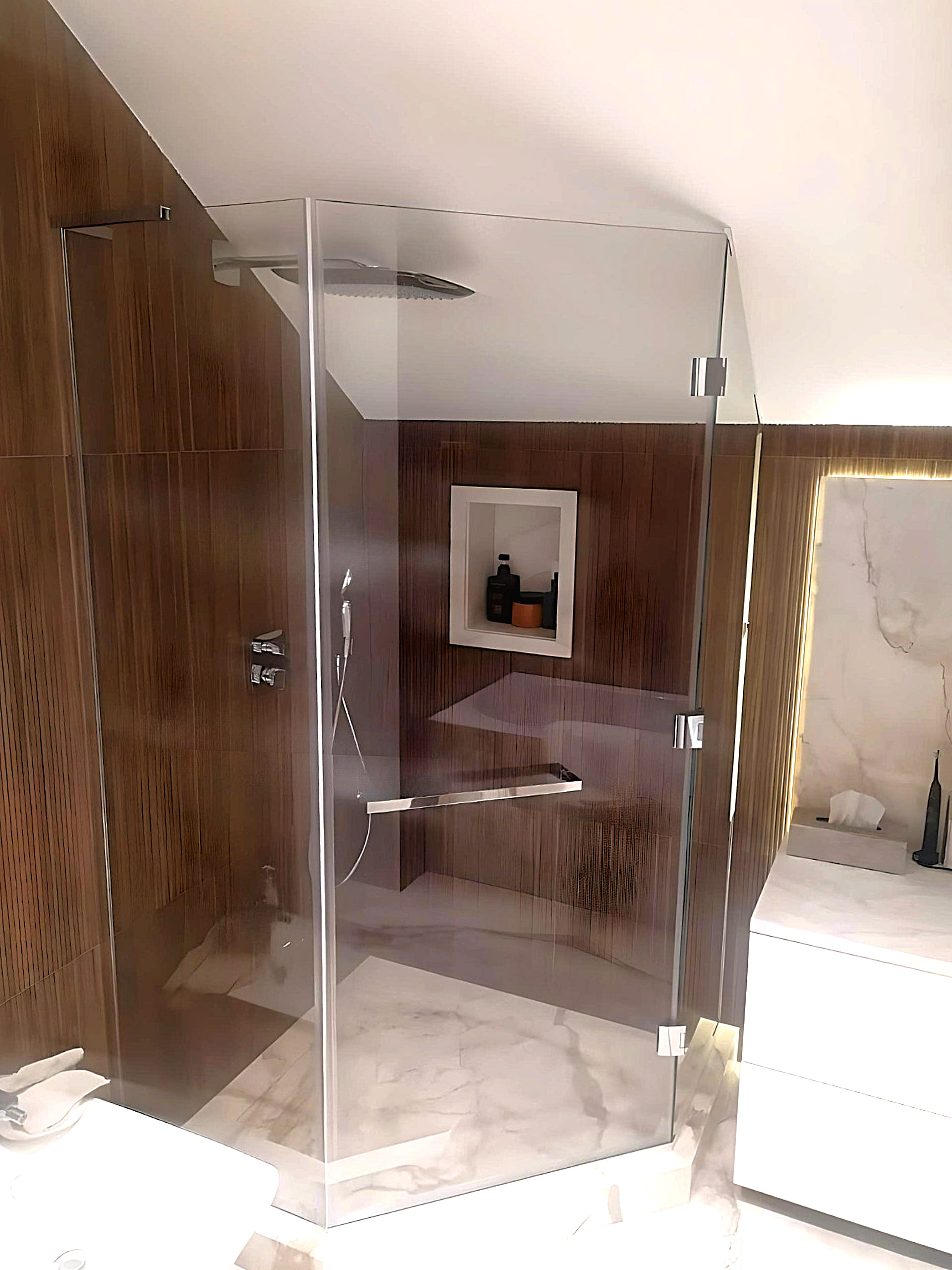 Интерьерное закаленное бельгийское стекло Guardian. Высокая механическая прочность, повышенные требования к оптическим свойствам.